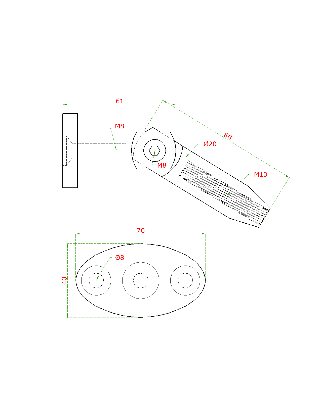 Kotvení vrchní (stěna/ táhlo) na sklenený prístřešek (závit:M10), broušená nerez K320 / AISI316