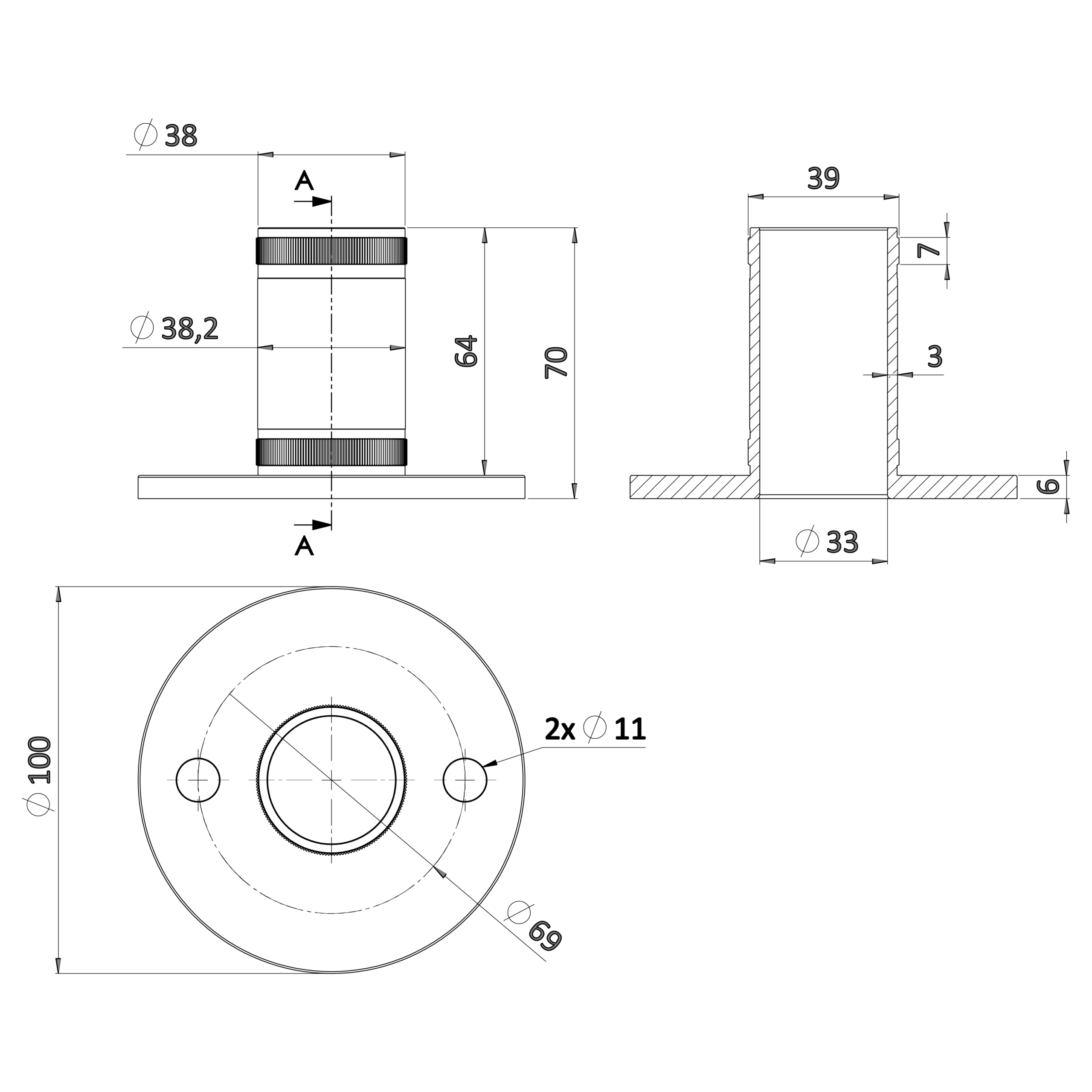 Držák madla pevný na trubku ø 42.4mm (71x64mm /závit M8), broušená nerez K320 /AISI304