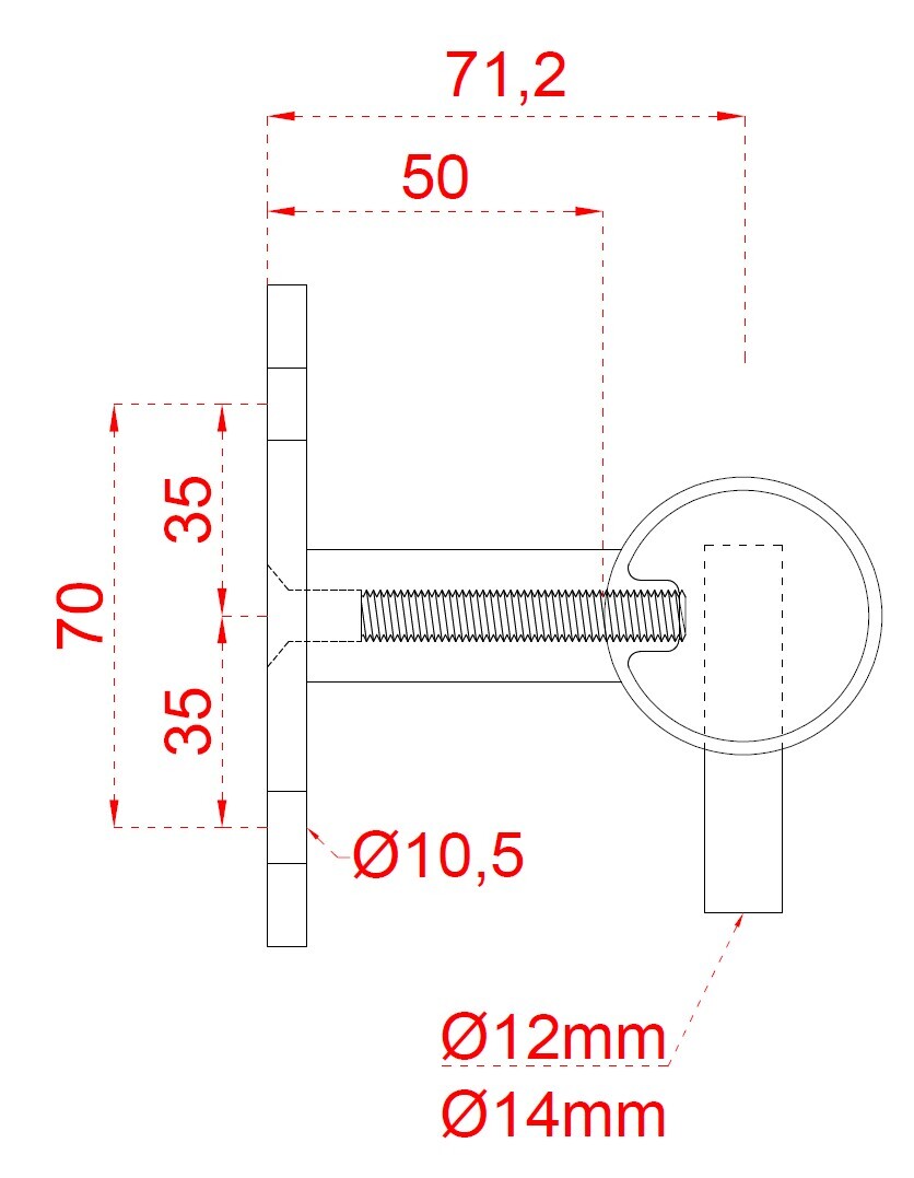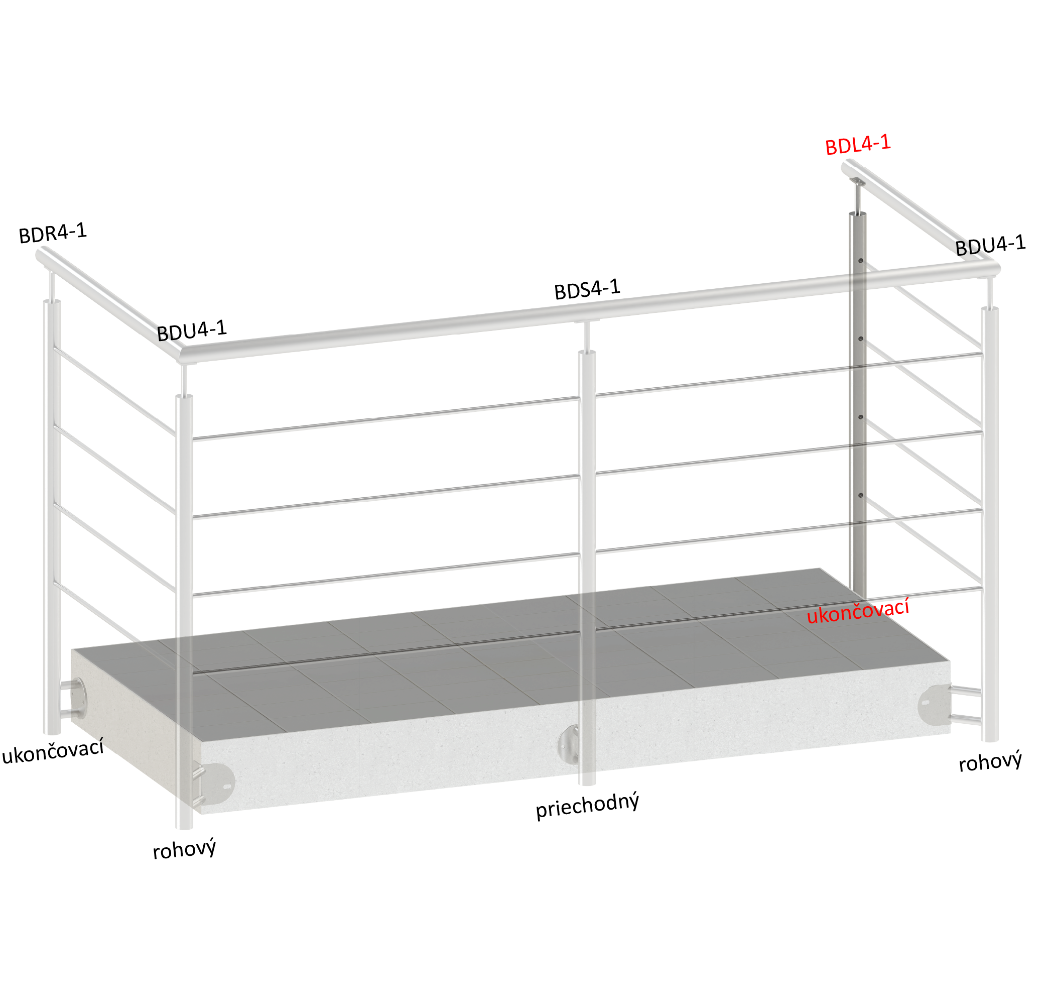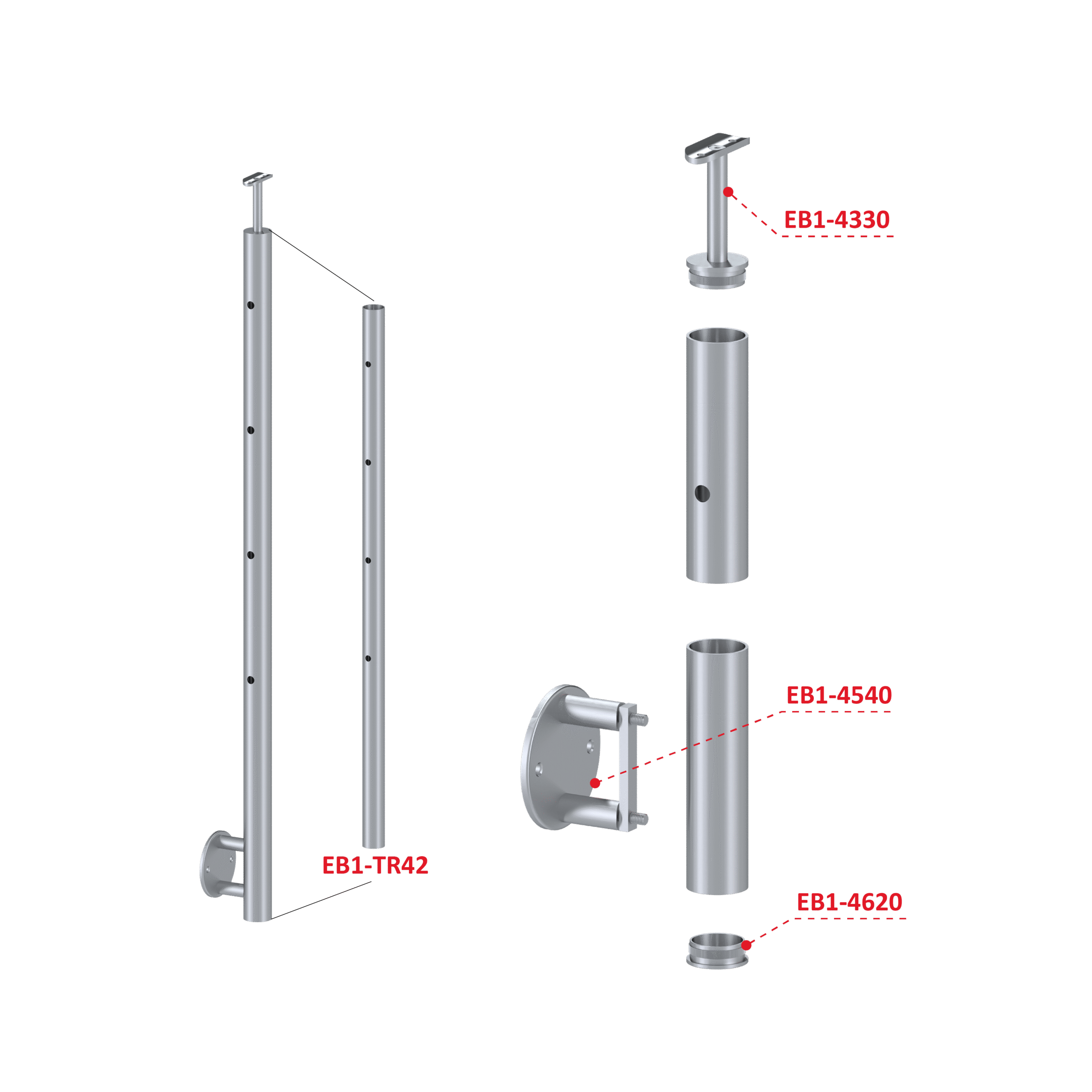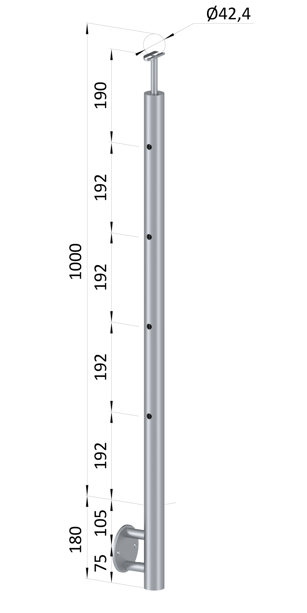 Nerezový sloup, boční kotvení, 4děrový koncový, levý