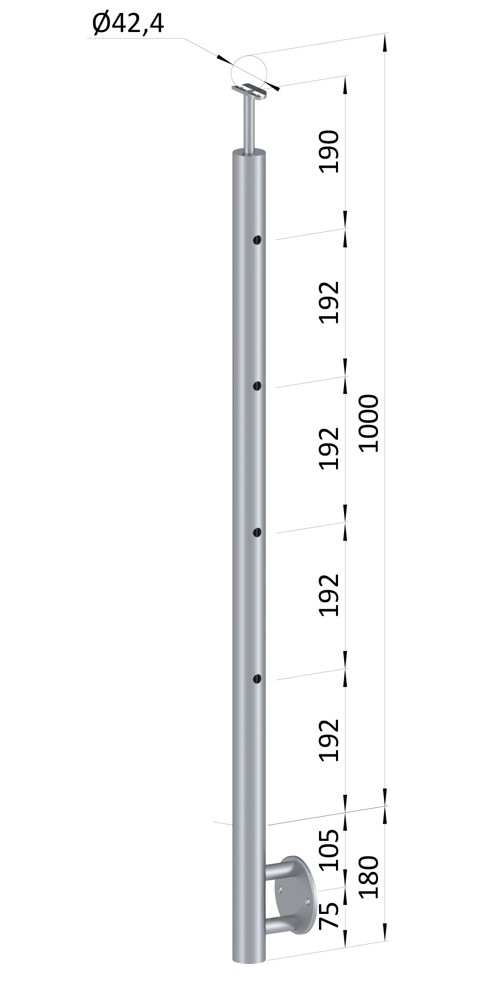 ø42,4x2mm boční kotvení 4děrový koncový pravý vrch pevný broušená nerez K320 / AISI316