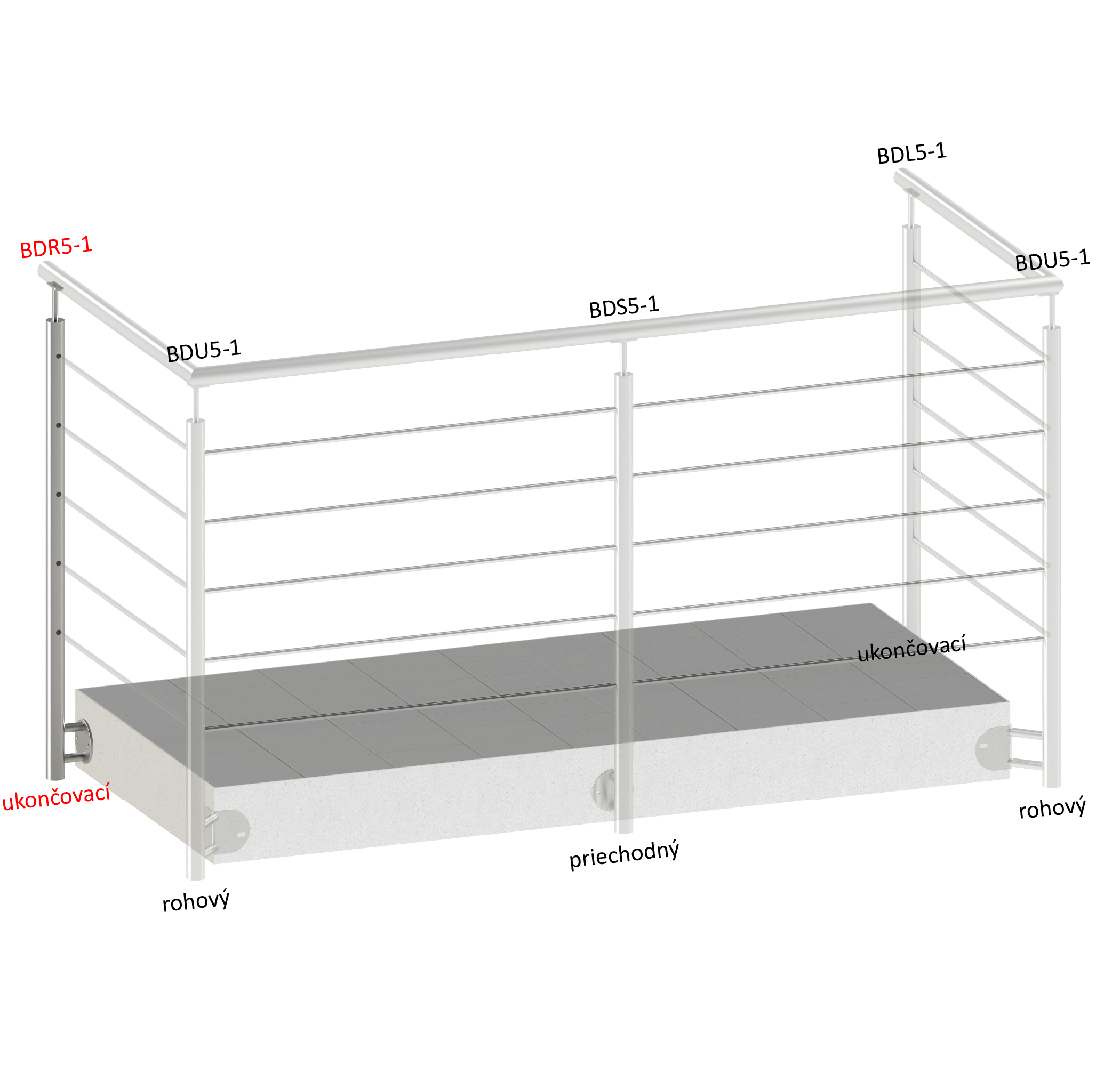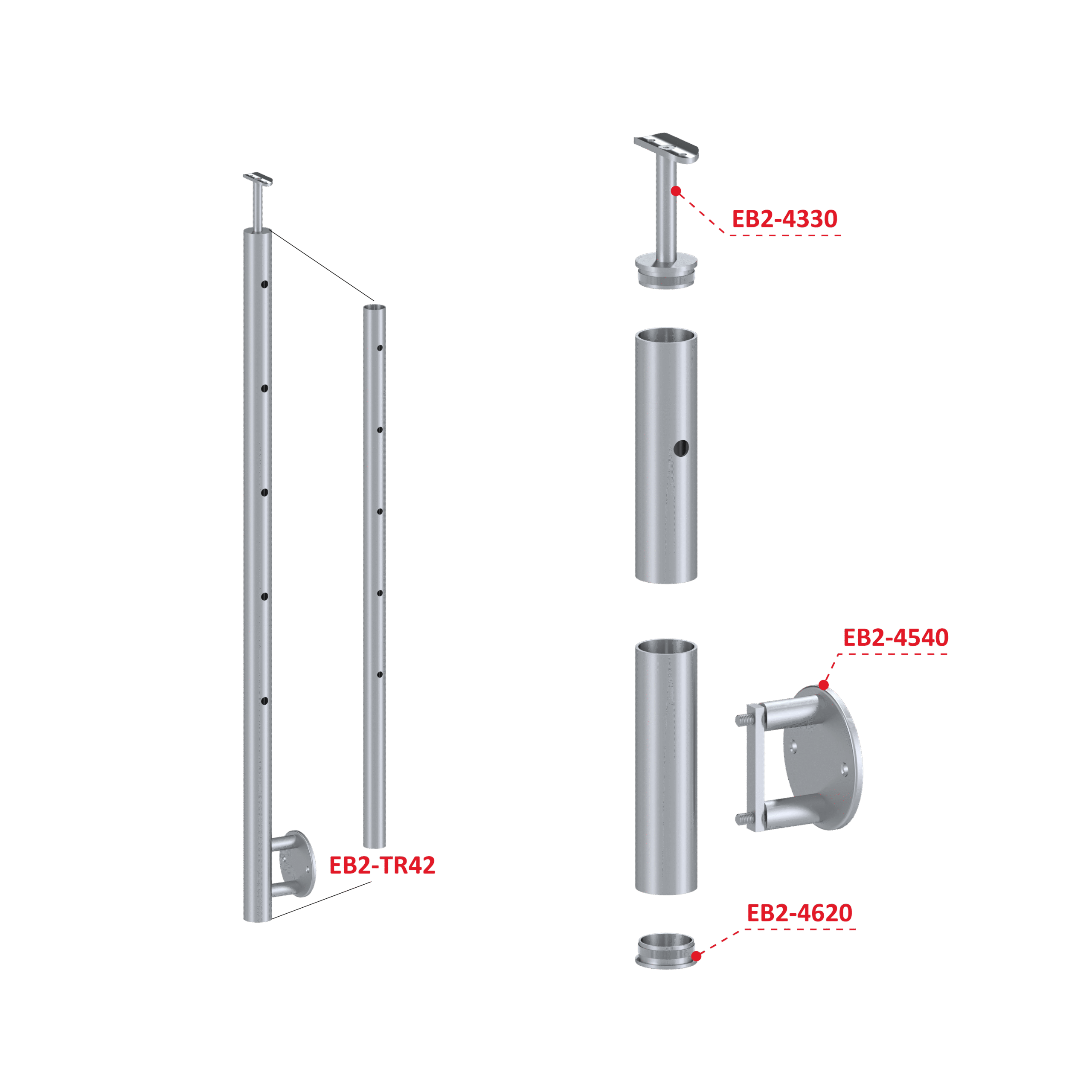 Nerezový sloup, boční kotvení, 5děrový koncový, pravý