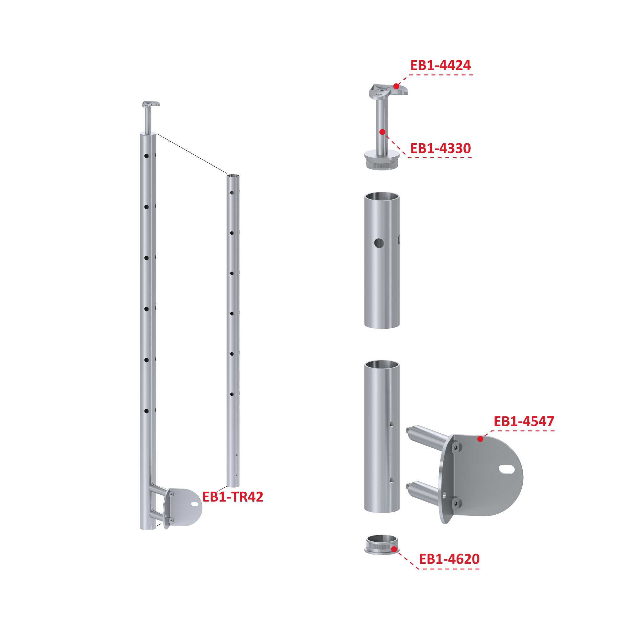 Nerezový sloup, boční kotvení rohové, 6děrový, rohový: 90°