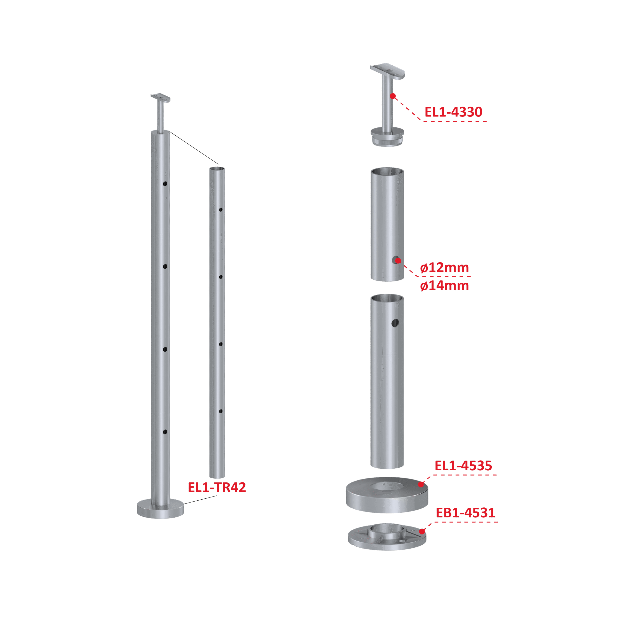 Nerezový sloup, vrchní kotvení, 4děrový průchozí