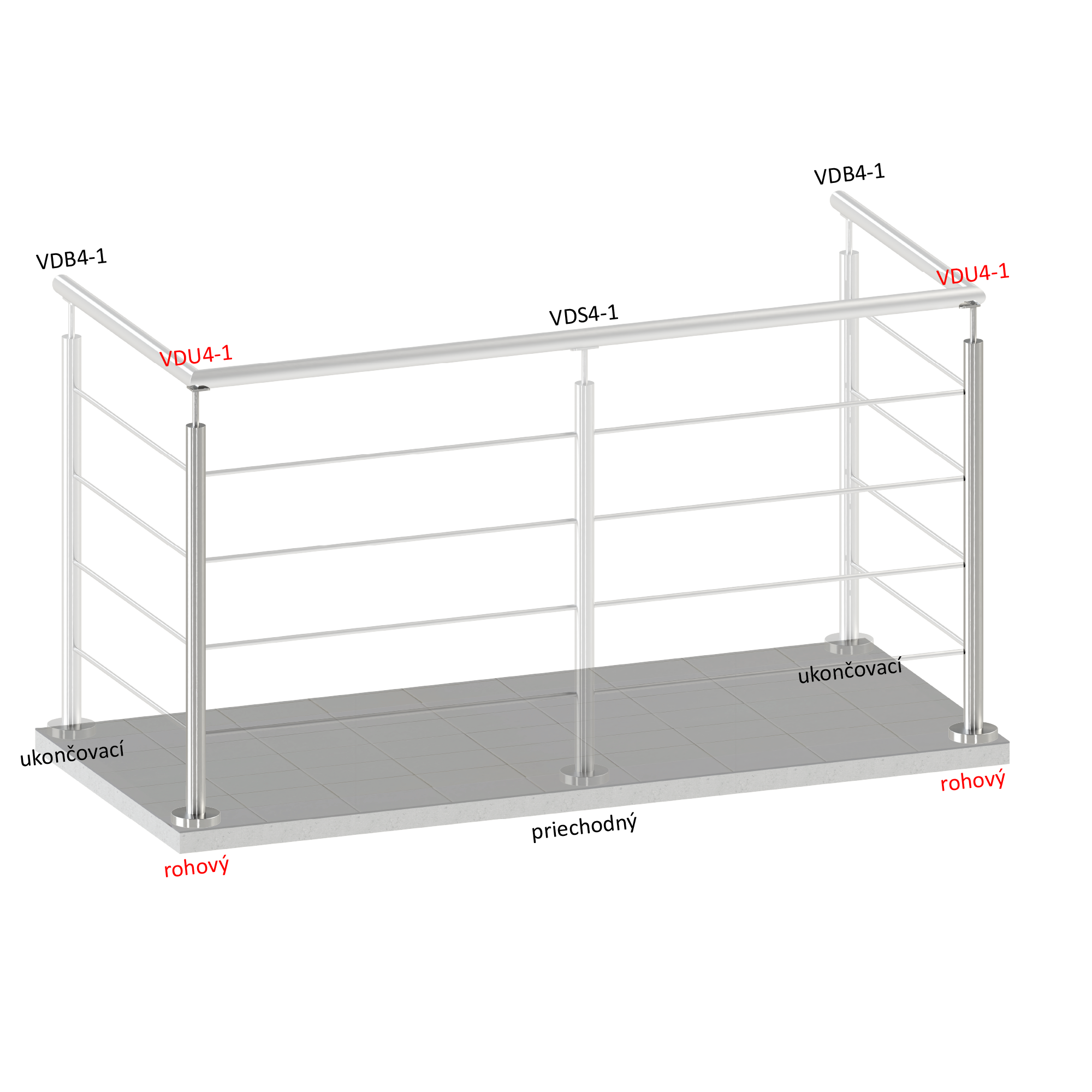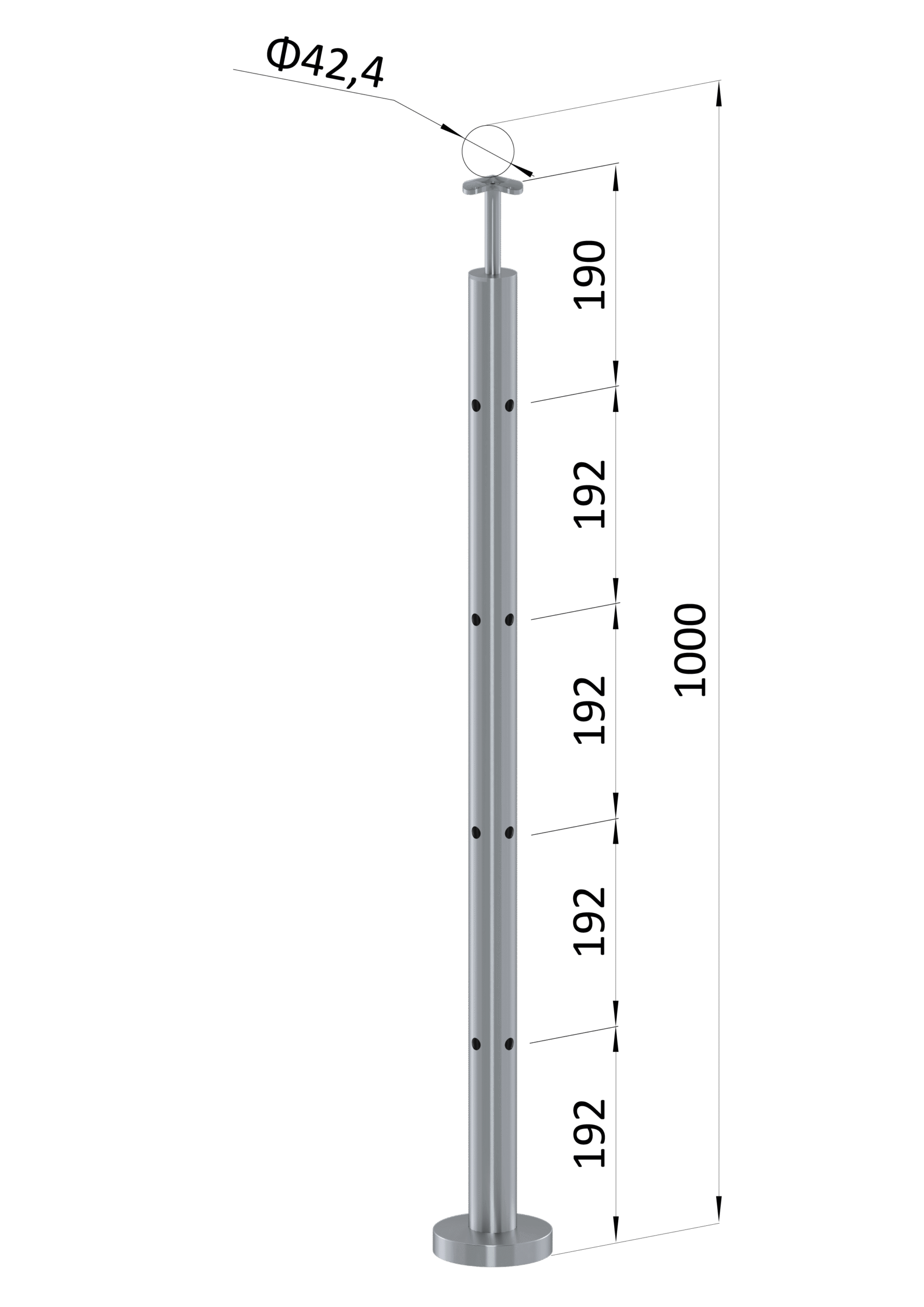 ø42,4x2mm vrchní kotvení 4děrový rohový: 90° vrch pevný leštěná nerez / AISI304