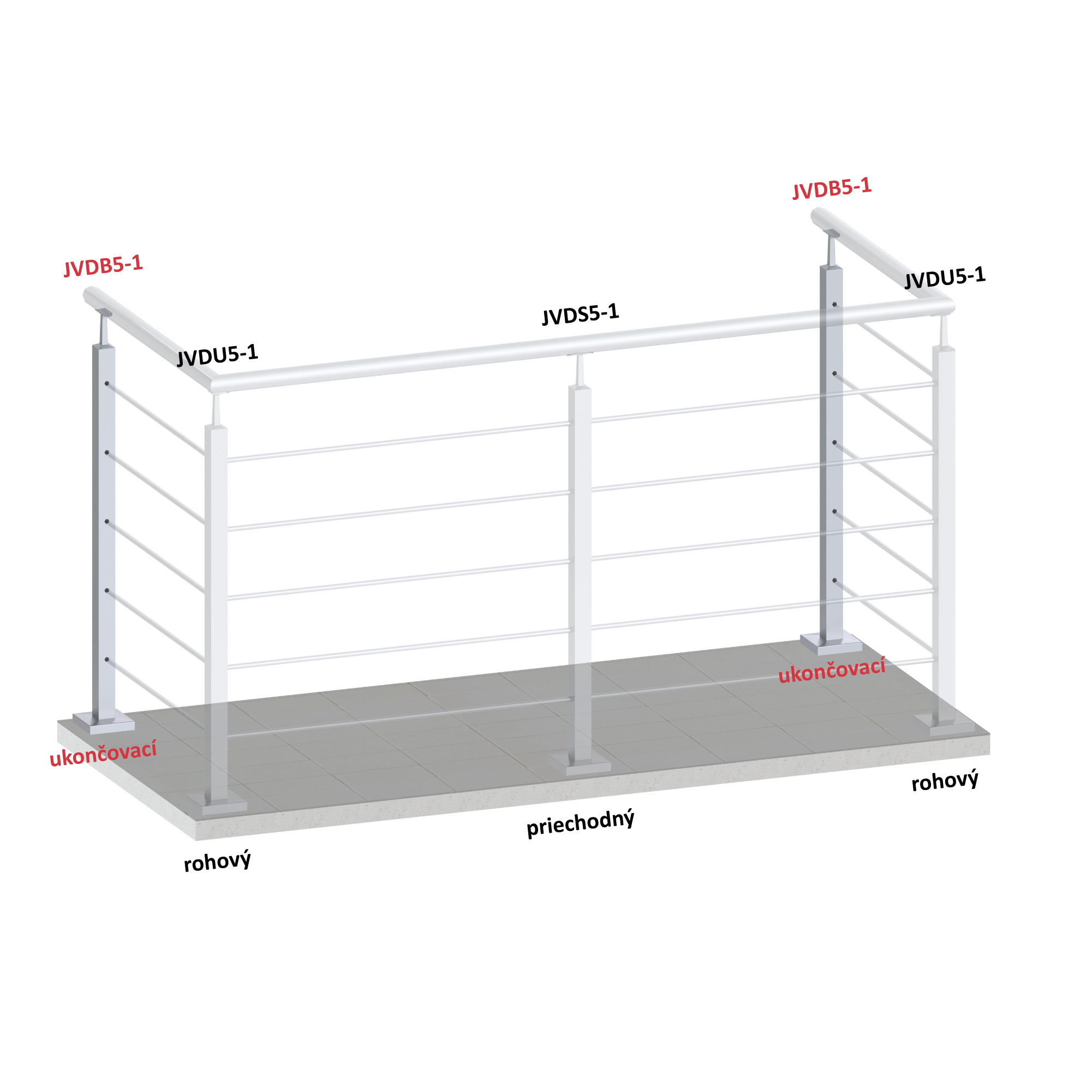Nerezový sloup, vrchní kotvení, 5děrový koncový
