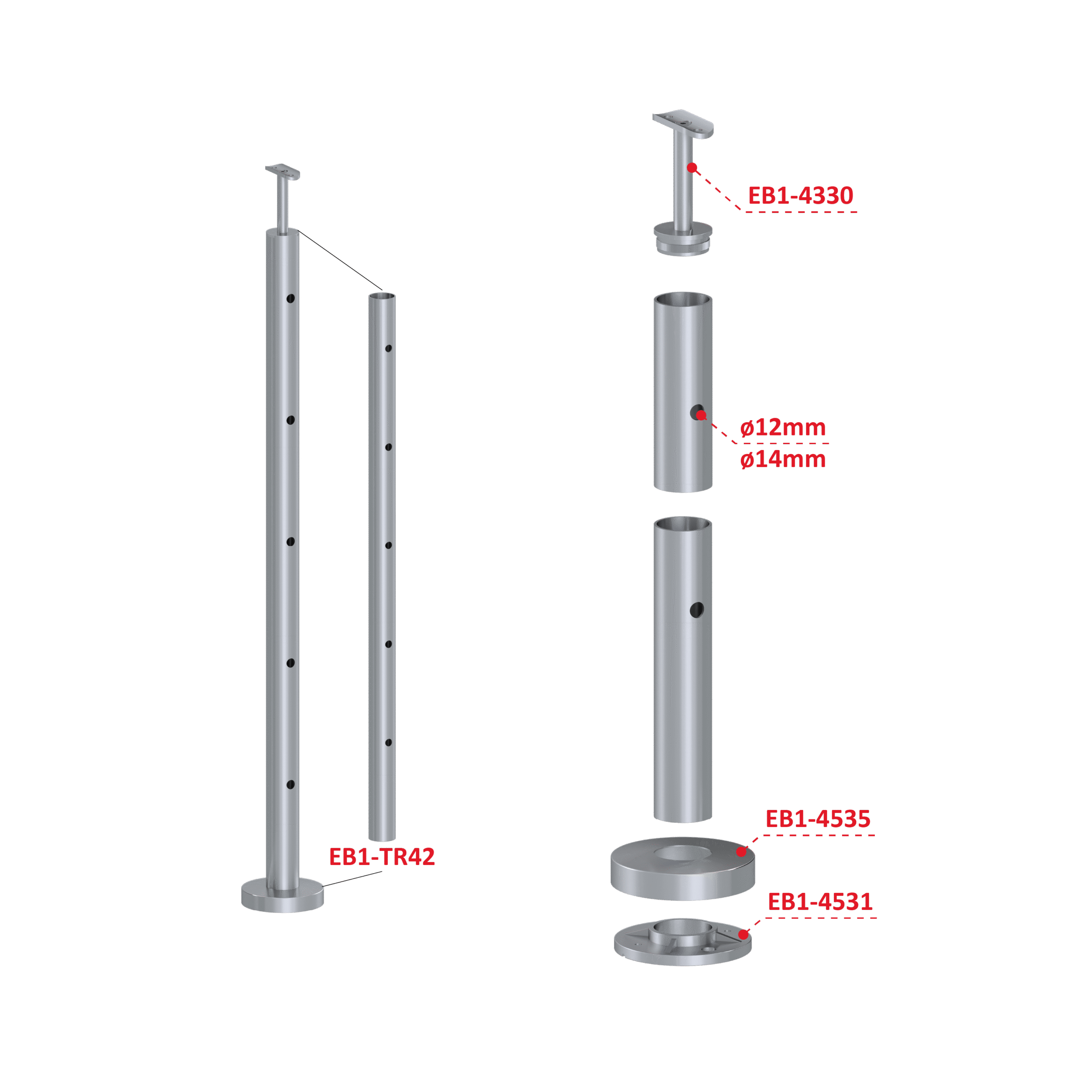 Nerezový sloup, vrchní kotvení, 5děrový průchozí