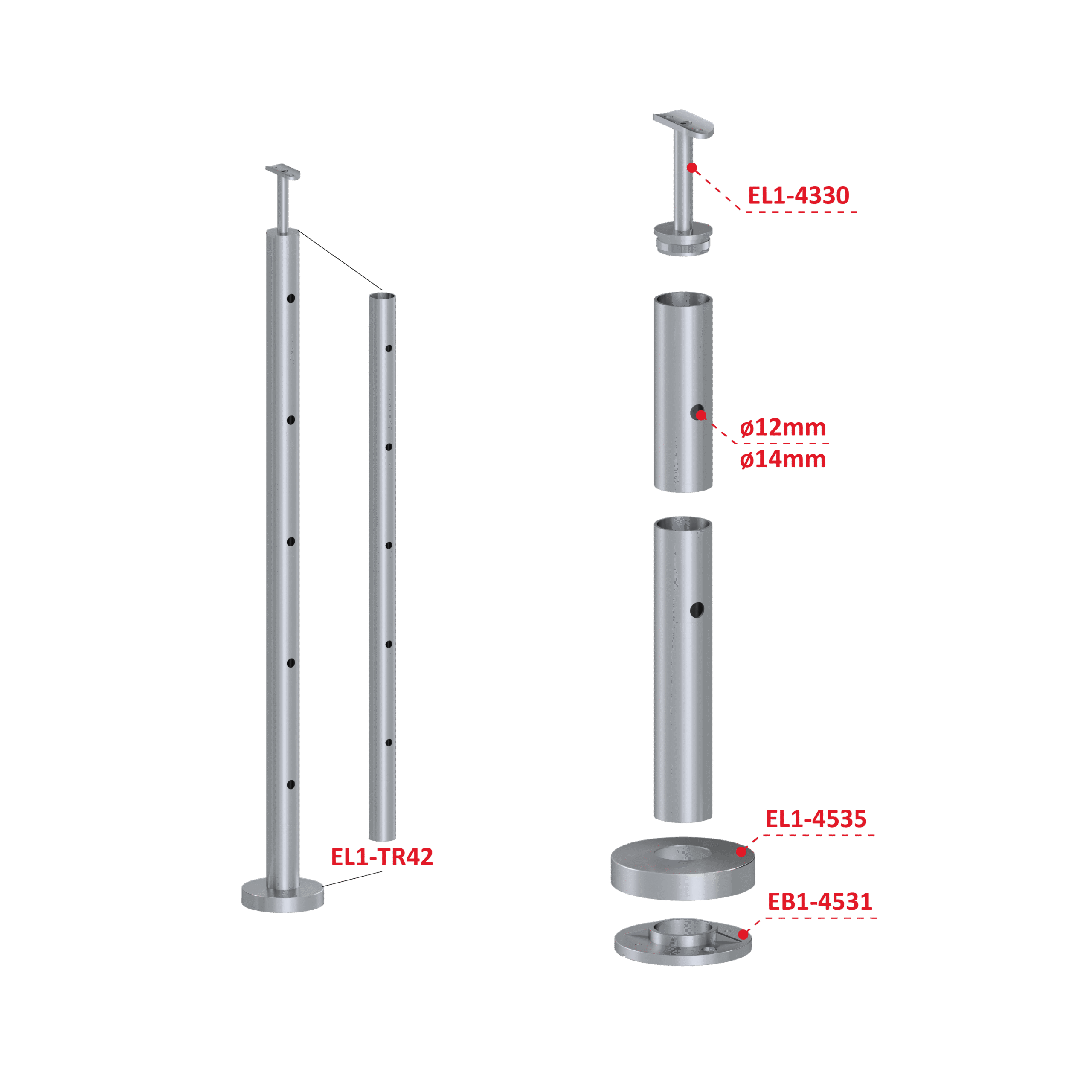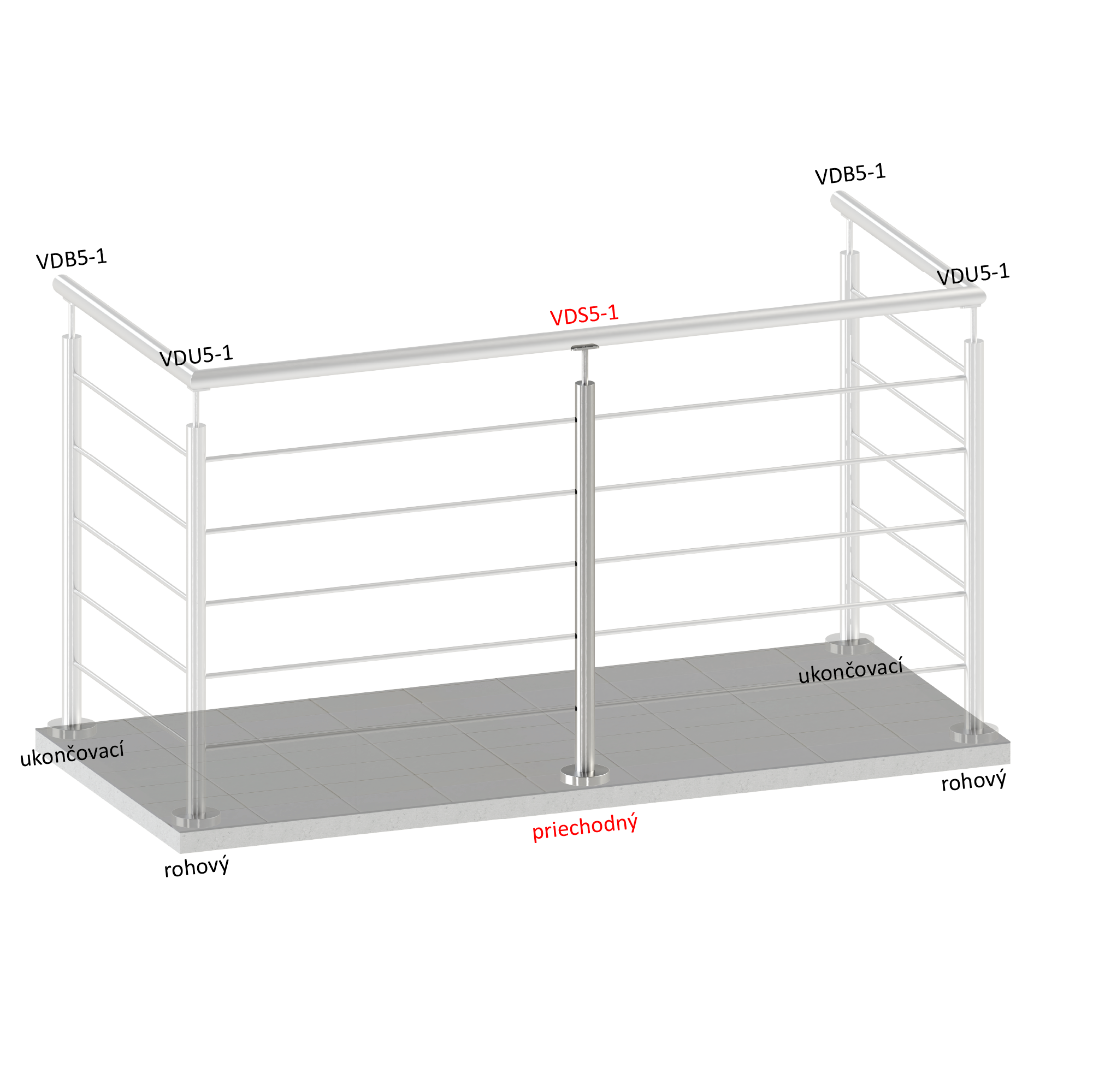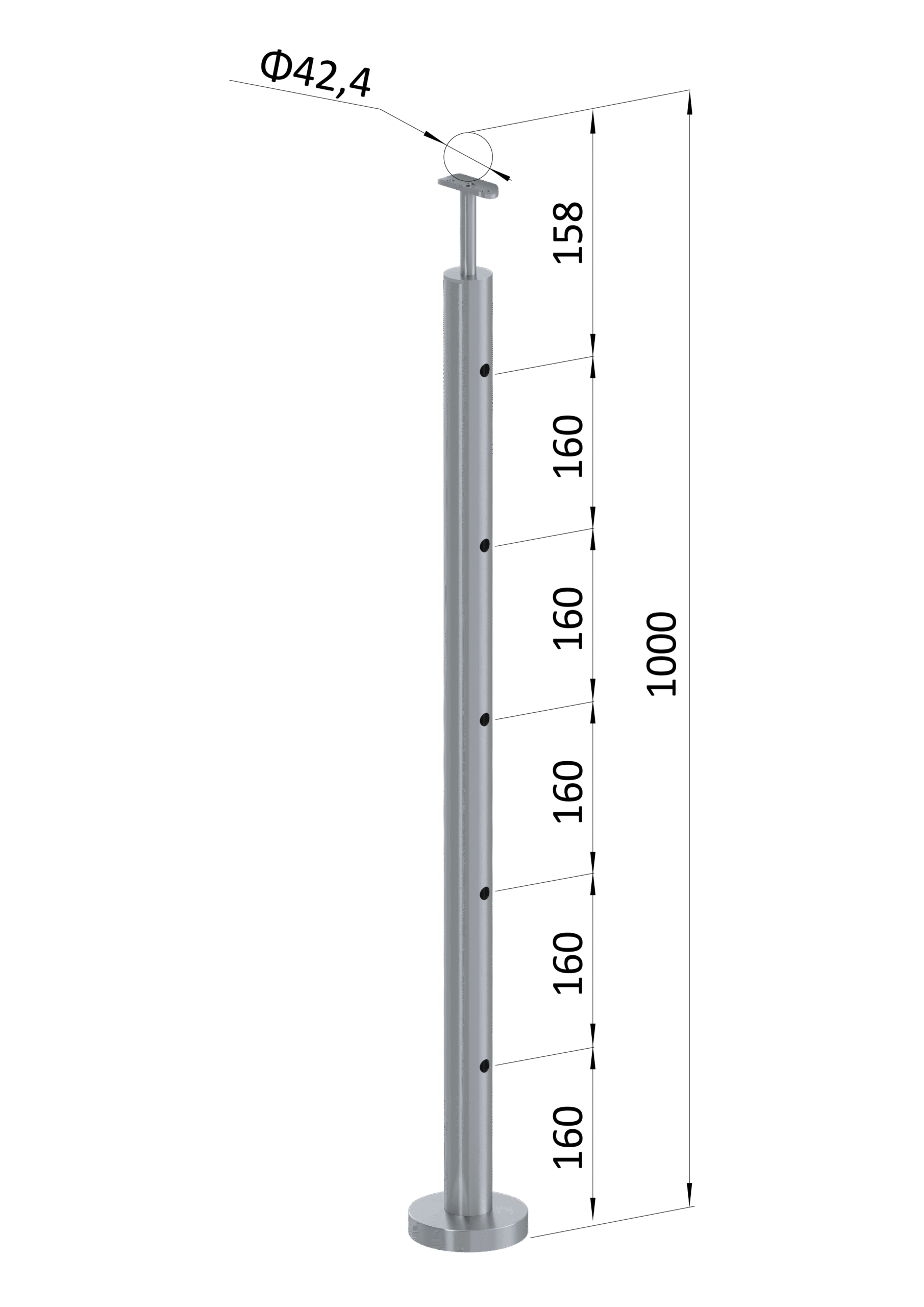 Nerezový sloup, vrchní kotvení, 5děrový průchozí