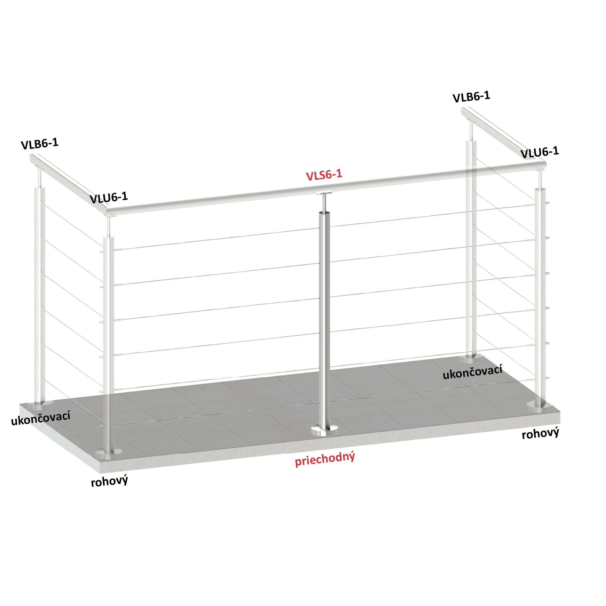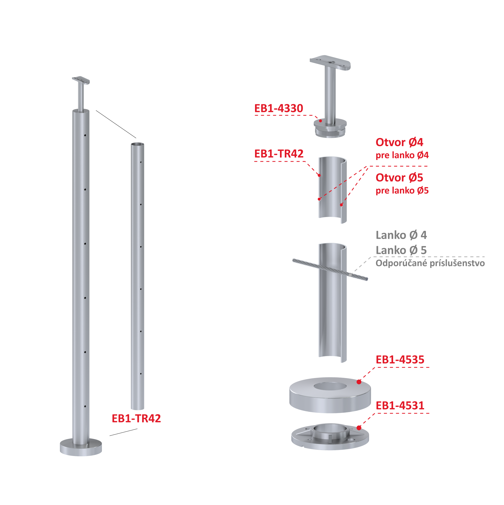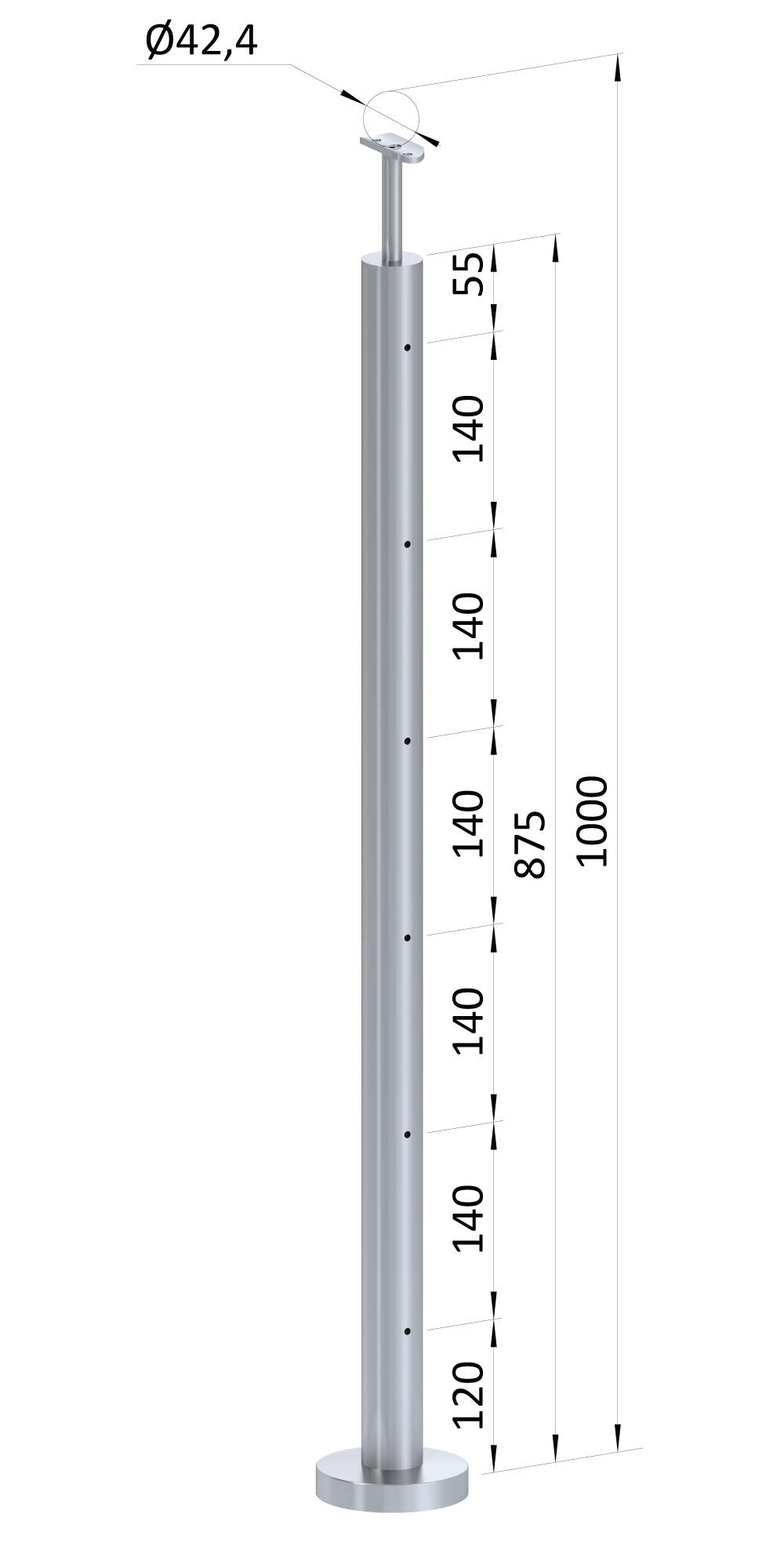 ø42,4x2mm vrchní kotvení 6děrový na lanko průchozí vrch pevný broušená nerez K320 /AISI304