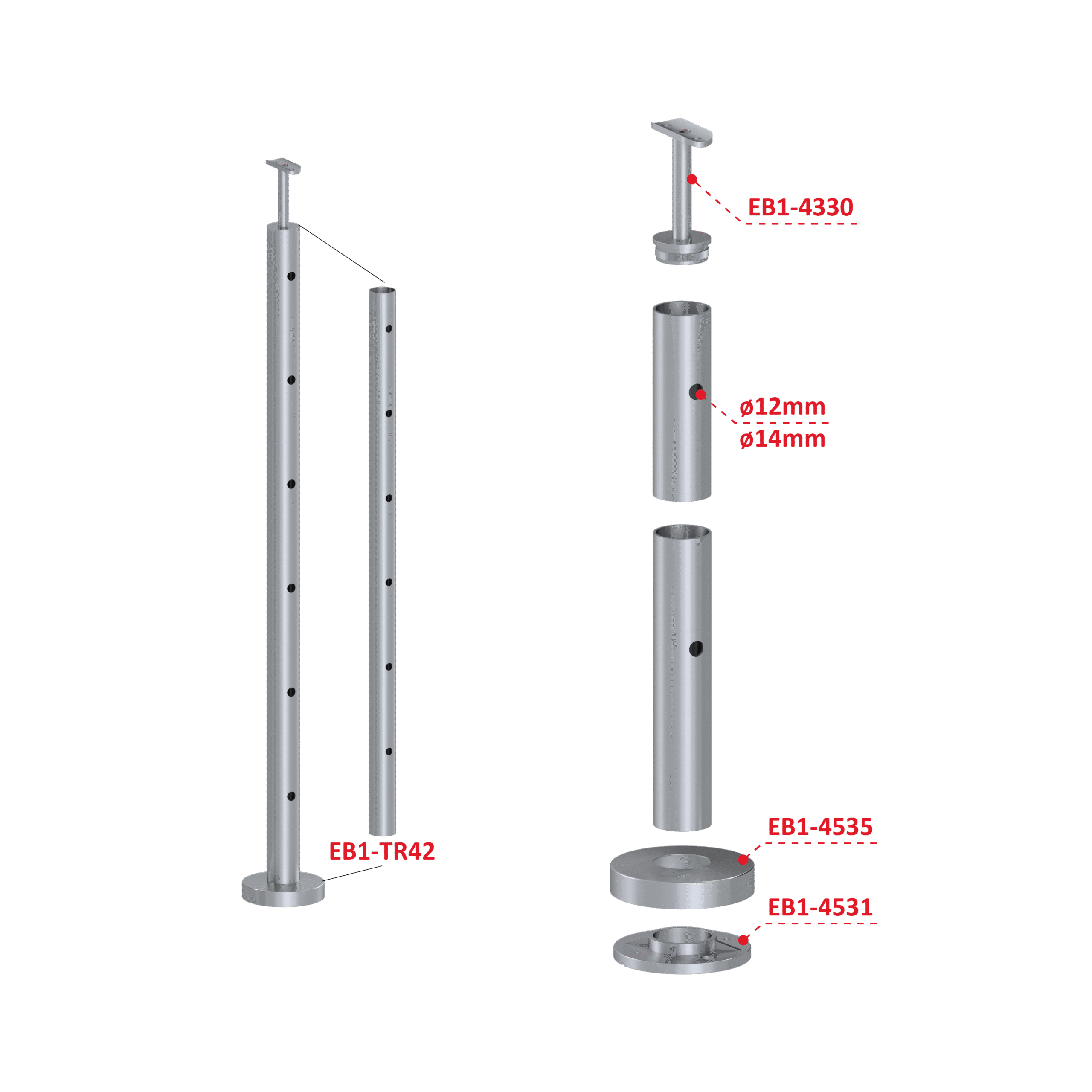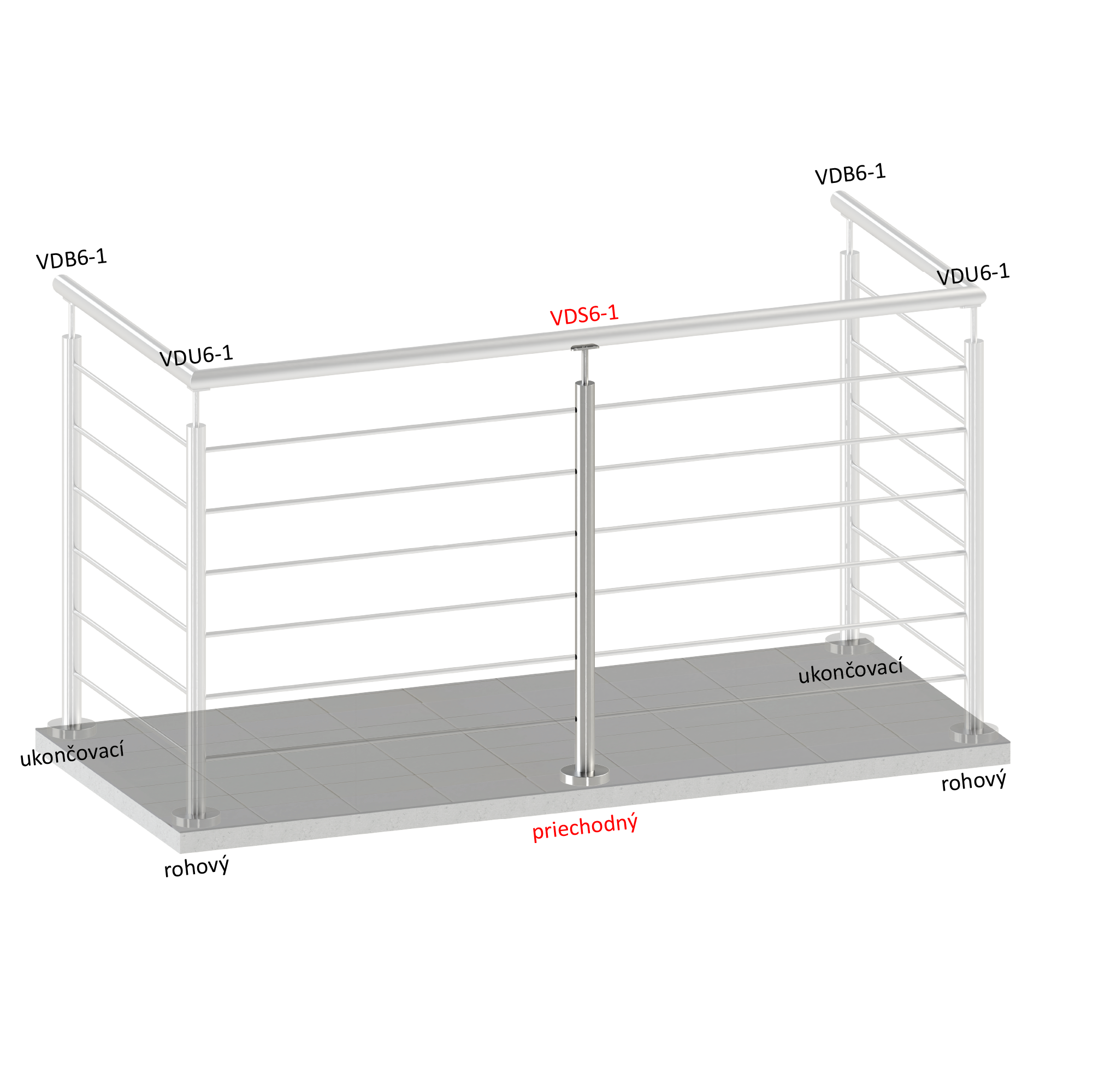 Nerezový sloup, vrchní kotvení, 6děrový průchozí