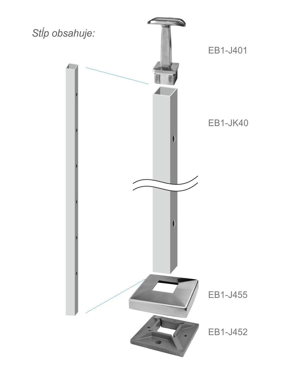 Nerezový sloup, vrchní kotvení, 6děrový průchozí