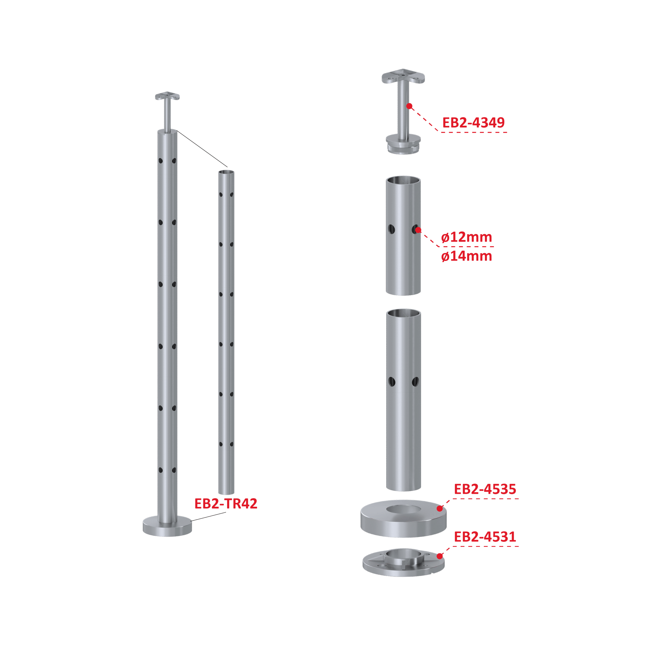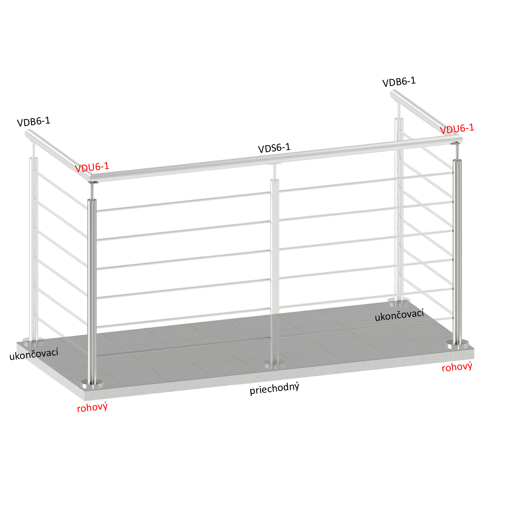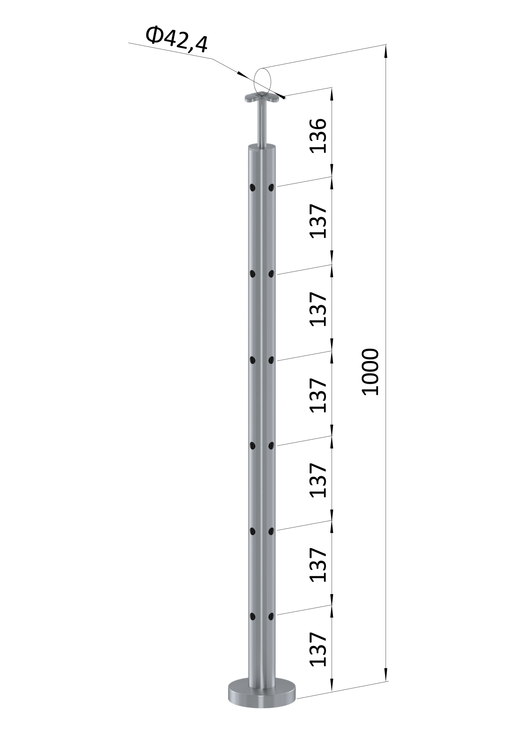 ø42,4x2mm vrchní kotvení 6děrový rohový: 90° vrch pevný broušená nerez K320 / AISI316