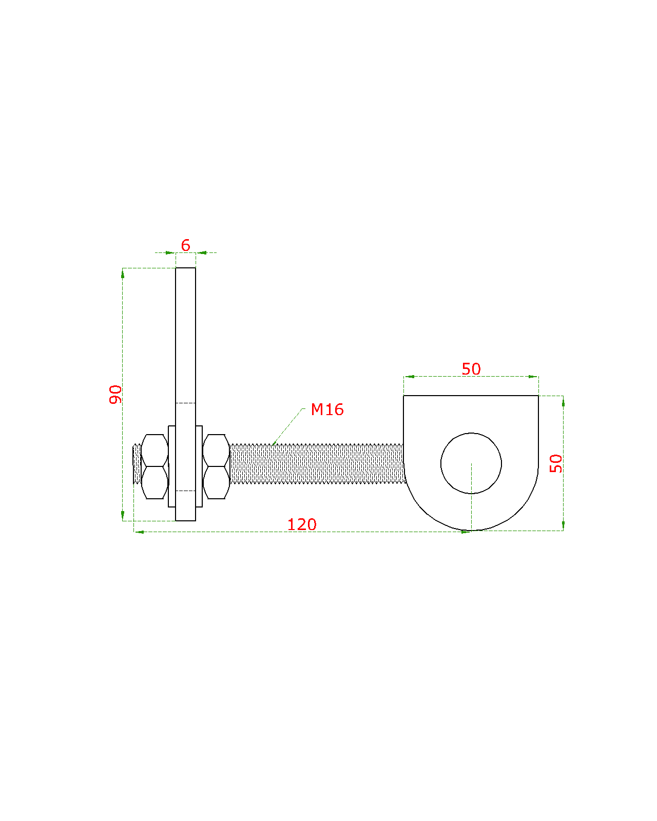 Nerezový závěs nastavitelný M16 s kotevní deskou, otevírání 180°, broušená nerez K320 / AISI304