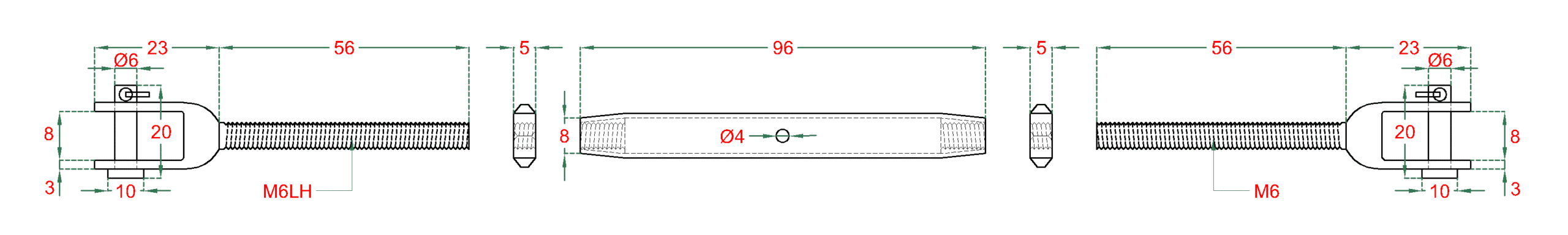 Napínák pro nerezové lanko, se závitem M6 a LH6, broušená nerez K320 / AISI304