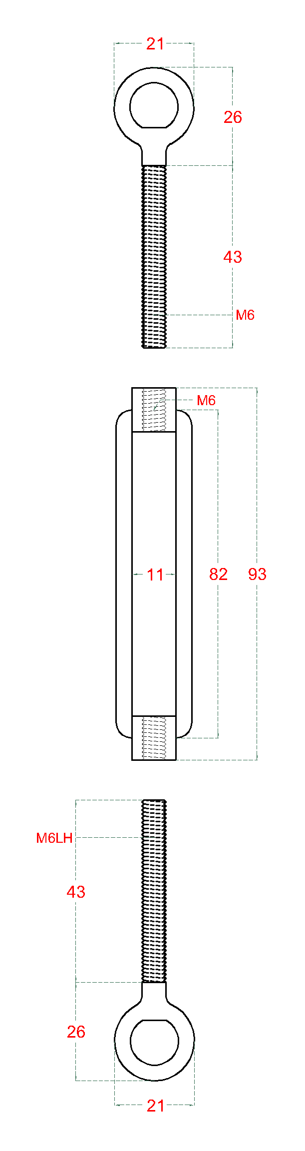Napínák s oky se závitem M6 a LH6, nerez AISI304