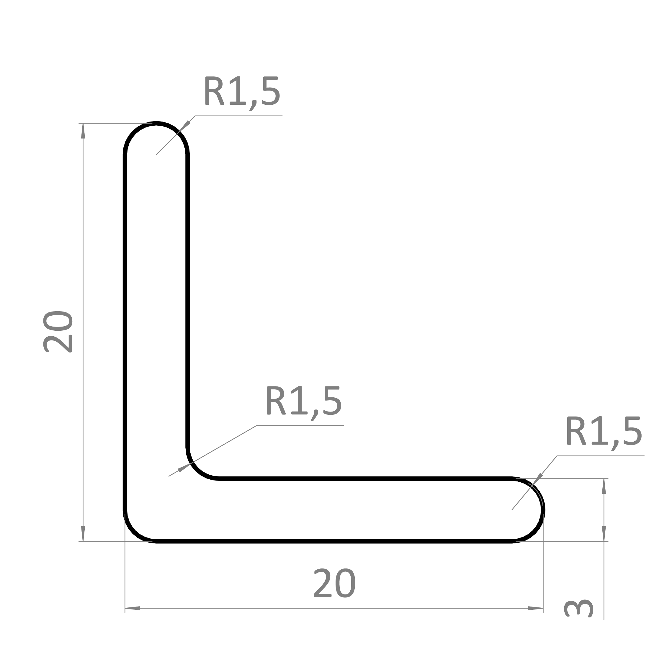 Tyč tvaru L 20 x 20 x 3 x 4000 mm, nerez AISI 304