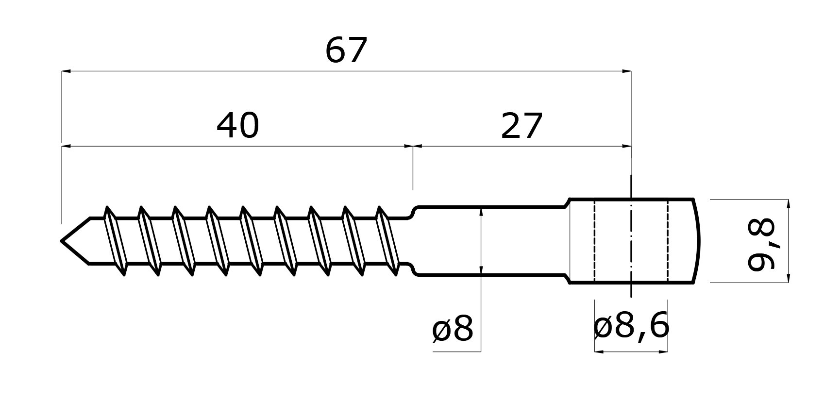 Úchyt do dřeva pro držák lanka, oko ø8.4mm, broušená nerez K320 /AISI304