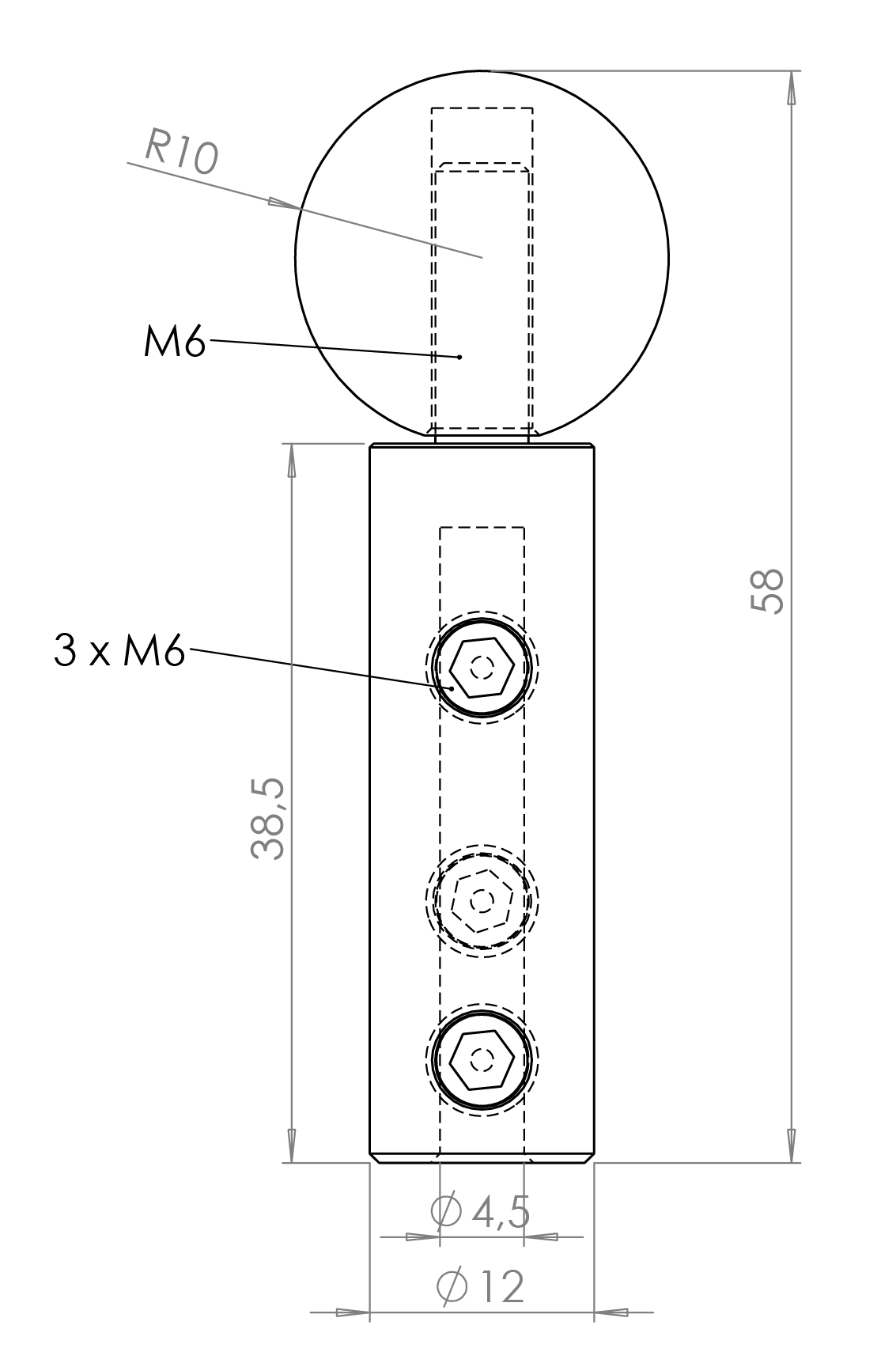 Úchyt pro nerezové lanko ø4 mm (61 mm / ø12 / 20 mm), broušená nerez K320 / AISI304